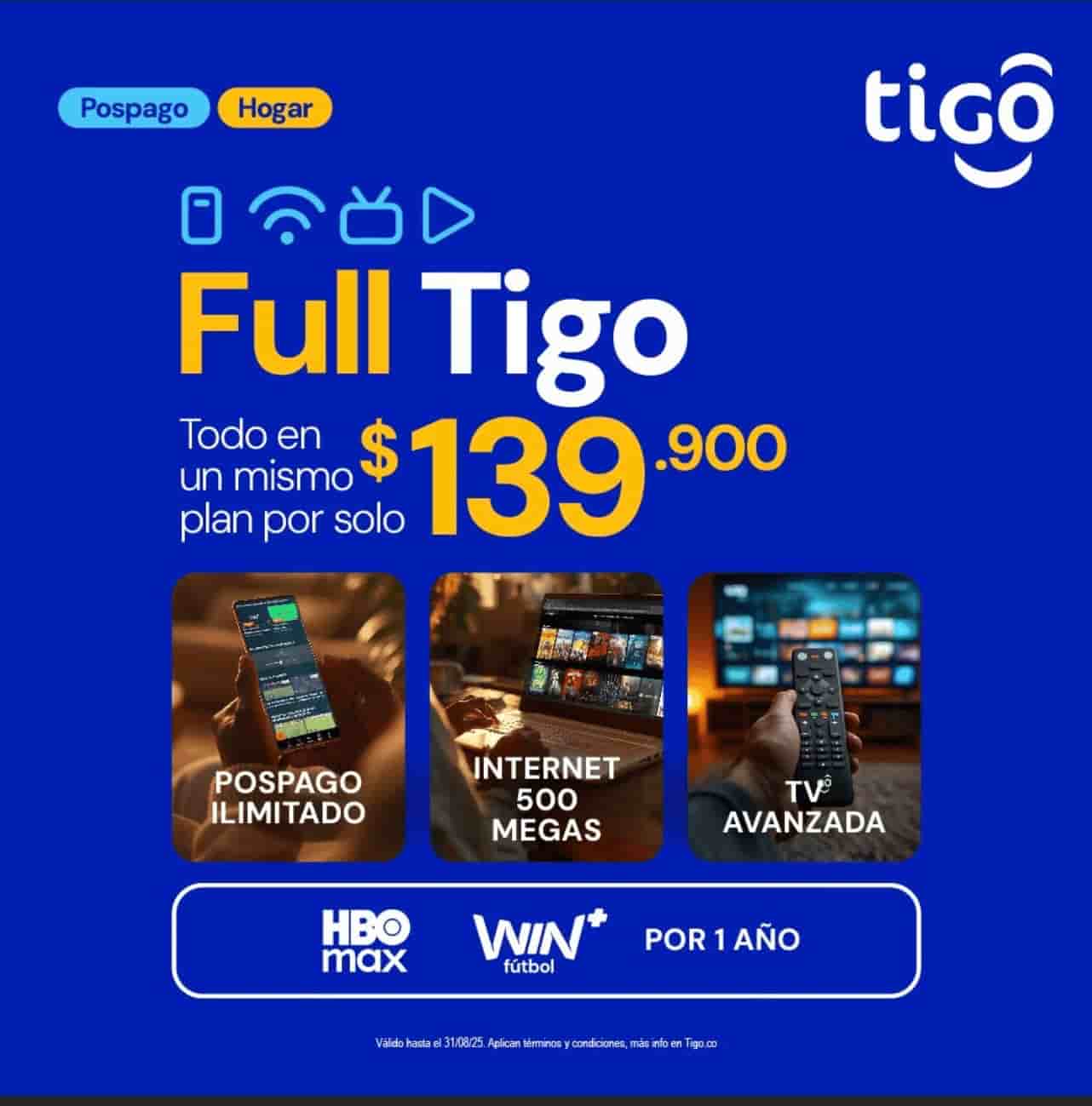 FULL TIGO Pospago ilimitado 500 Megas MAX.